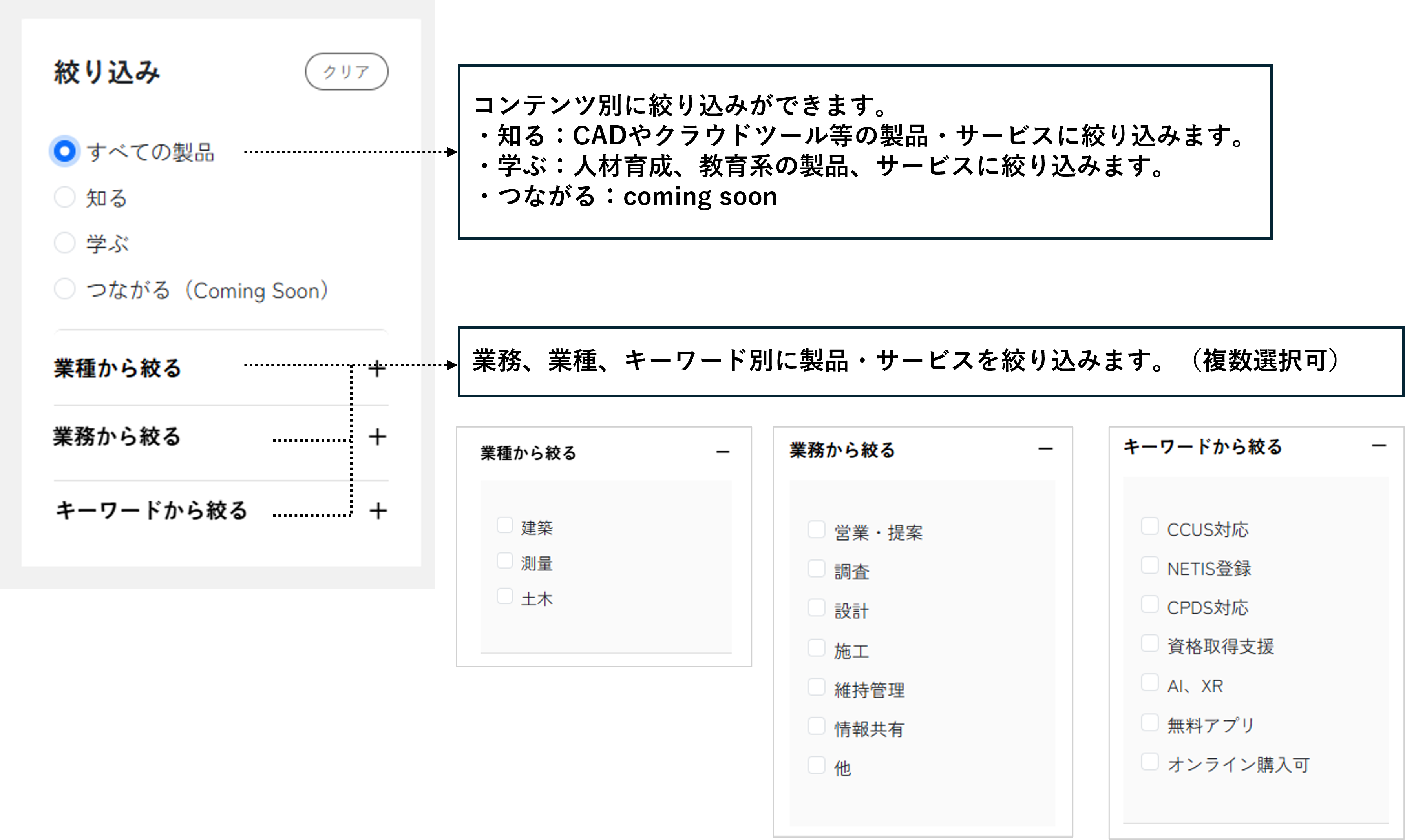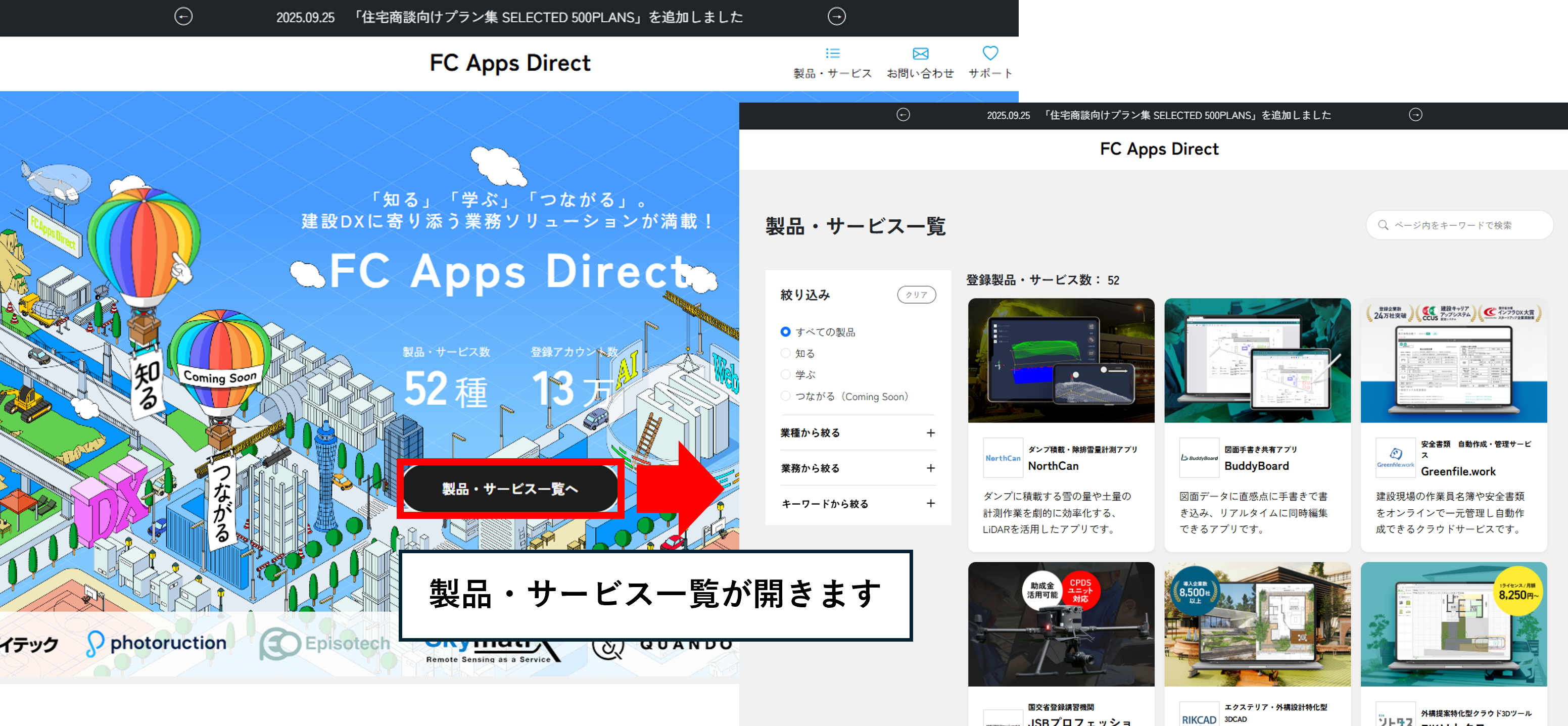 1. 「製品・サービス一覧へ」をクリックすると、製品一覧ページが開きます。
