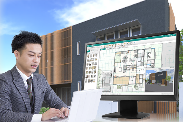 住宅プランの入力~高品質パース・プレゼンボードからVR体験まで、初期提案・仕様打合せに必要な資料を簡単に素早く作成できるプレゼンソフト。