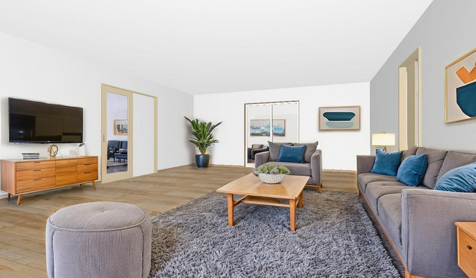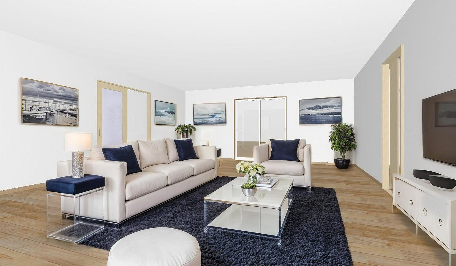 同じスタイルでも全く印象の異なるパースインテリアが作成できました。今回は「モダン」を使用しましたが、いろいろなスタイルがあるのでお客様とのイメージ合わせも捗りそうです。 - 建具を避けて家具を配置してくれる