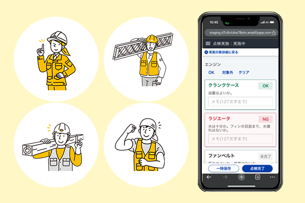 特に、現場で負担の大きい「始業前点検」をスムーズに運用するための仕組みが整っています。