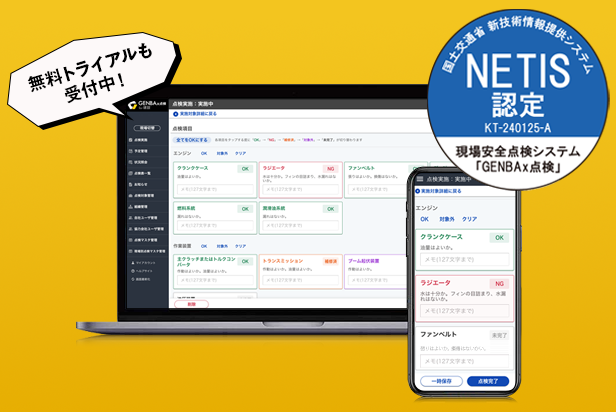 「GENBA×点検」はNETIS登録技術(※新技術情報提供システム)です。