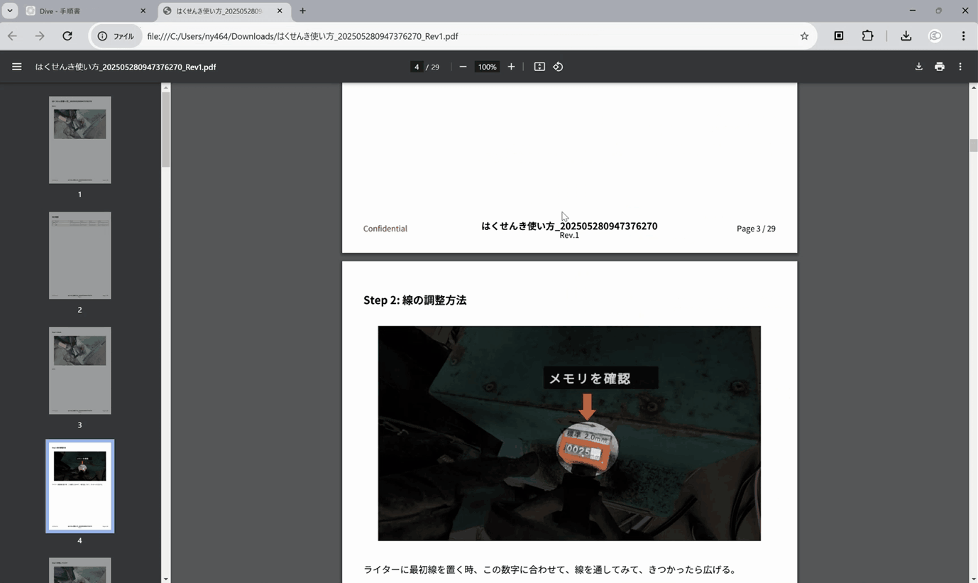 動画を流せない環境でも、直感的な「手順書」で技術伝承を推進。動画編集のついでに代表画像抽出しているので手間無し。
