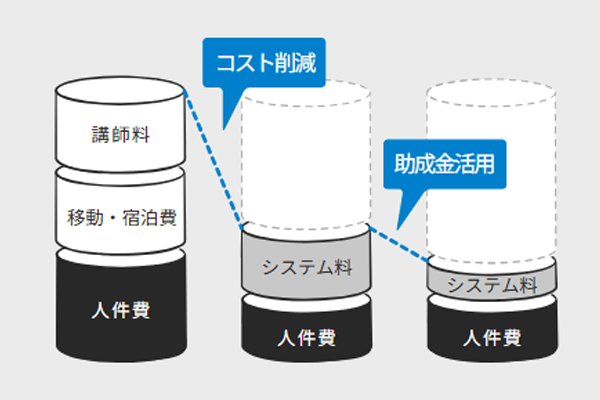 e-ラーニング型のため講師料・移動費・人件費を削減でき、助成金の活用や多言語自動翻訳対応により学習負担も軽減できます。