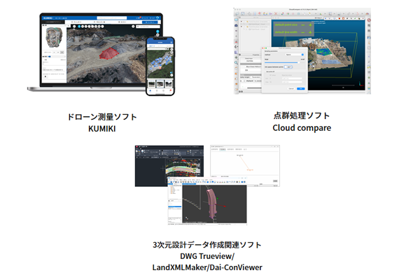 くみきと無料の点群処理ソフト、無料の三次元設計データソフトを用いて学習するため、高価なソフト導入の前に、現場で本当に必要な機能や使い勝手を見極めることが可能です。